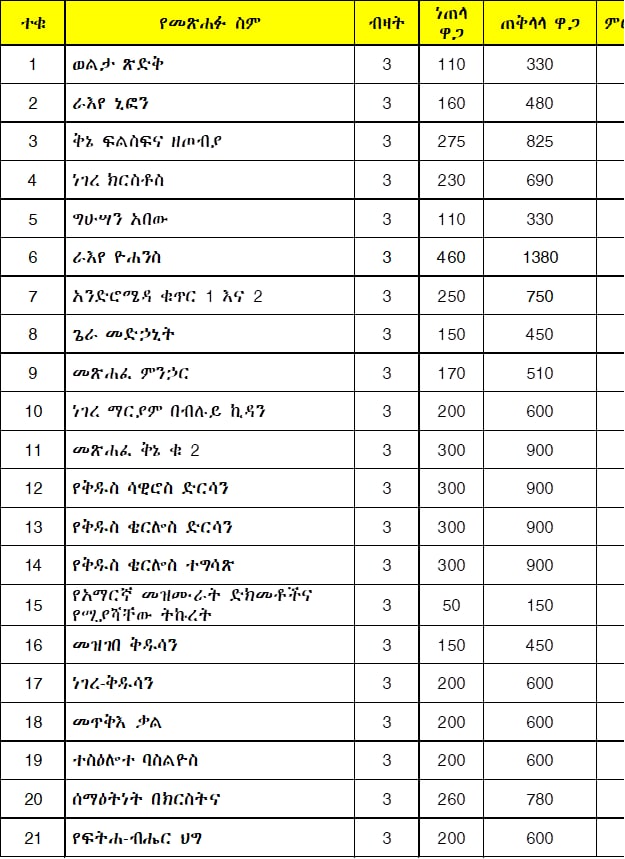 ከእዚሁ ጋር ተያይዞ አንድ ወንድማችን ከተዘረዘሩት ውጪ 40 መጻሕፍት በቅርቡ መለገሳችውን እናሳውቃለን።